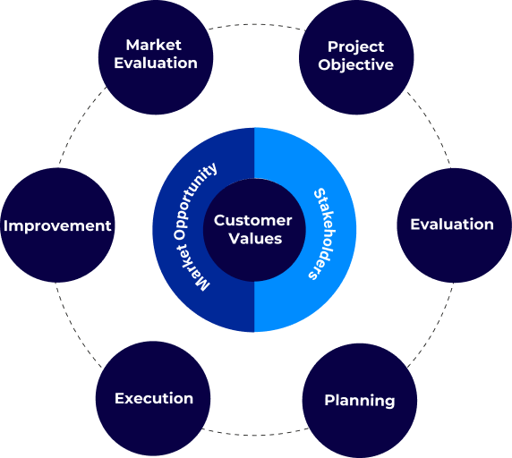 We believe that successfull projects balance the needs of stakeholders with the market opportunity without ever losing sight of the core value of our customers and the value that can be provided to society.